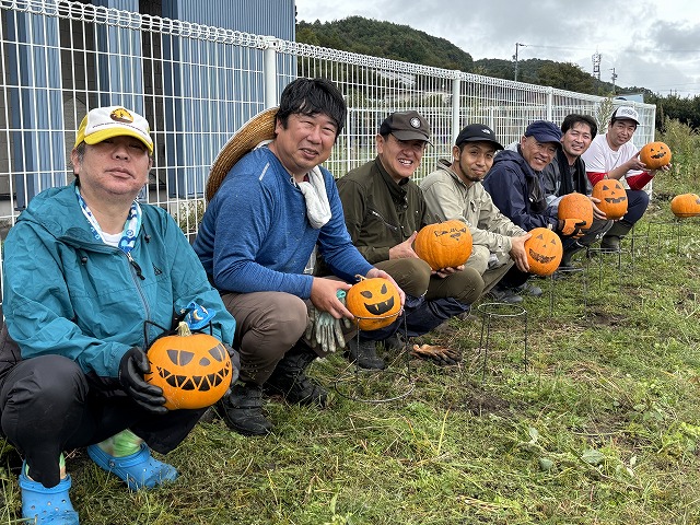 今年から、かぼちゃをメンバーさんが栽培してくれましたので個数もアップ!(これまではかぼちゃを購入していました)20個ほどのかぼちゃが並びました。